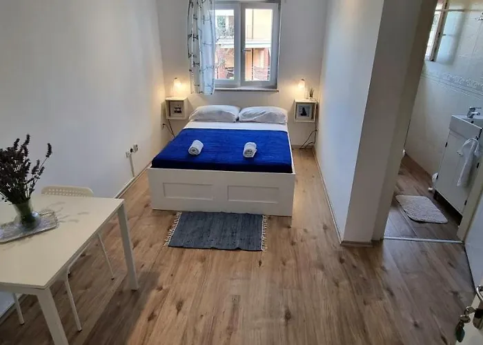 Featuring views of the street, the 1-room Tiny Studio Big Living Rovinj is located around 25 minutes' walk from the Mulini Beach. This 19 m² apartment offers complimentary private parking on site and modern comforts like Wi-Fi.